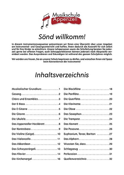 Instrumentenführer der Musikschule Appenzell